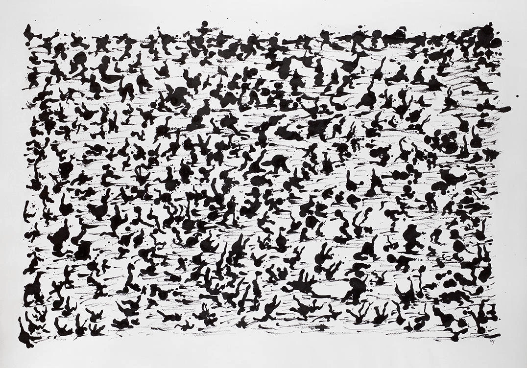 Plume (1963), Henri Michaux. Ci-dessous: Sans Titre, Peinture à l’encre de Chine sur papier, 1960.